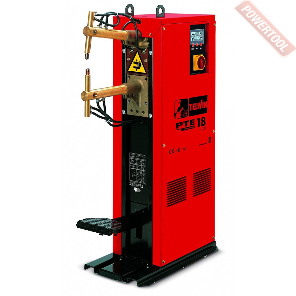 Аппарат контактной точечной сварки TELWIN PTE 18 LCD - cварочный аппарат для контактной (точечной) сварки колонного типа, с подвижным рычагом и цифровым микроконтроллерным управлением. Этой модели требуется водяное охлаждение электродов и рычагов.