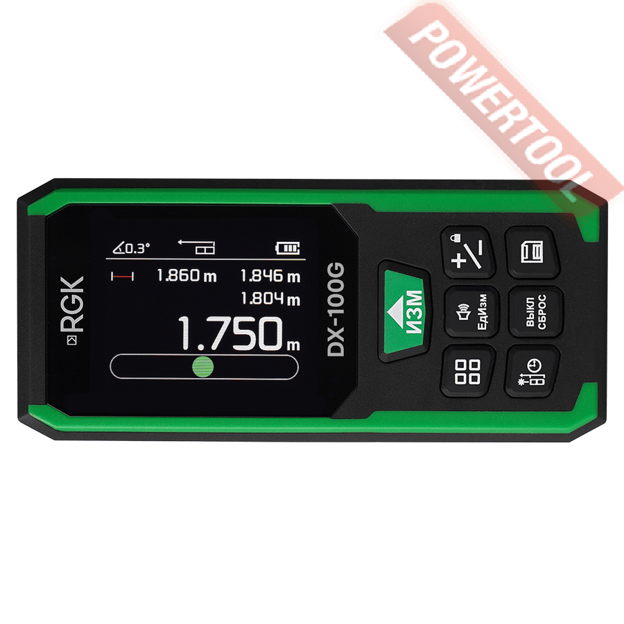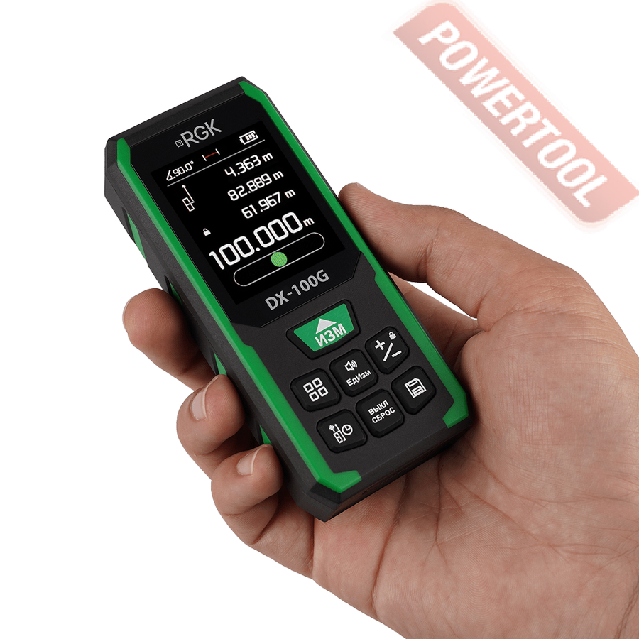 Дальномер лазерный RGK DX-100G – профессиональный измерительный инструмент строительного назначения, предназначенный для использования на дистанциях до 100 м, с помощью которого можно выполнять обмеры участков, строений и прочих объектов. Прибор оборудован зеленым излучателем, упрощающим выполнение работ на ярком солнце – за счет хорошей различимости маркера, используемого для визуального наведения, а встроенный инклинометр позволяет контролировать величину вертикальных углов и производить выравнивание. К преимуществам изделия относится наличие цветного графического дисплея, обеспечивающего высокую наглядность и информативность, а также аккумуляторного питания с подзарядкой через USB Type-C, за счет чего инструмент отличается экономичностью, не нуждаясь в замене батареек.