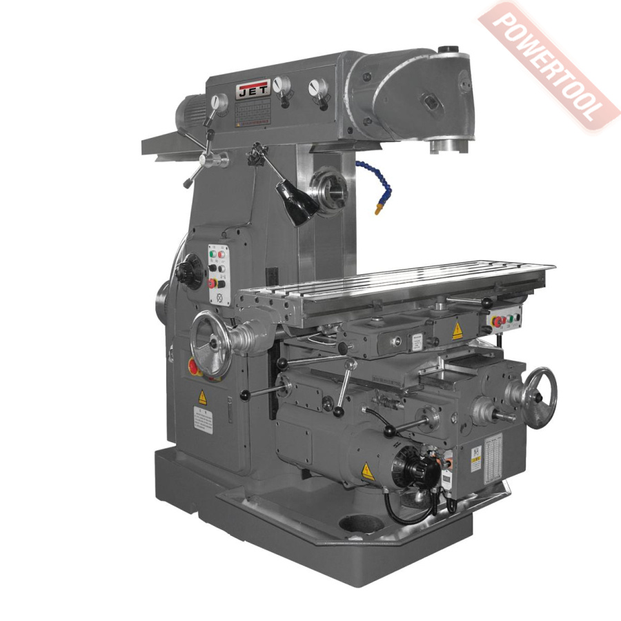 Широкоуниверсальный фрезерный станок по металлу JET JMD-939 GH востребован в многопрофильных мастерских и ремонтных подразделениях, автотюнинговых ателье, конструкторских бюро и т.д. Максимальный диаметр концевой фрезы у данной модели 100 мм, концевой - 25 мм, максимальный диаметр сверления - 30 мм. Фрезерная головка имеет механизм наклона на +/-90 градусов. Предусмотрен поворот стола +/-30 градусов. Станок оборудован системой автоподачи стола по оси Х с регулируемой скоростью от 24 до 720 мм/сек, а также и его ускоренным перемещением со скоростью 1083 мм/мин. Поставляется в расширенной комплектации, включая систему подвода СОЖ, лампу освещения рабочей зоны, зажимную тягу, цанговый патрон с набором цанг, оправку шпинделя, фрезерные тиски, 16 мм сверлильный патрон и многое другое.