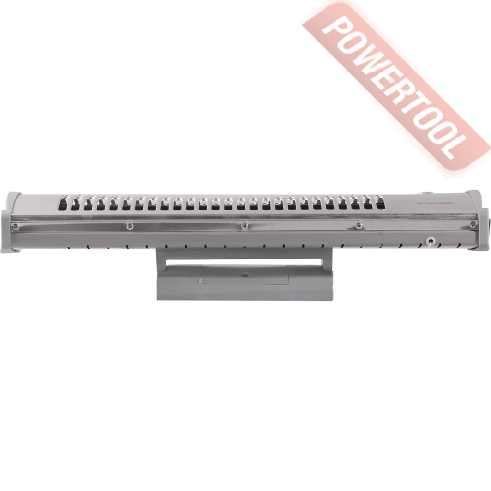 Инфракрасная тепловая пушка электрическая, напряжение сети 220 В, тепловая мощность 0,6/1,2 кВт, потребляемая мощность 1200 Вт, два режима работы, датчик перегрева, нагревательный элемент в виде кварцевой трубки, возможность крепления на стену, угол наклона 60 градусов, габариты ДхШхВ 130х570х160 мм, вес 1,4 кг, комплект крепежа.