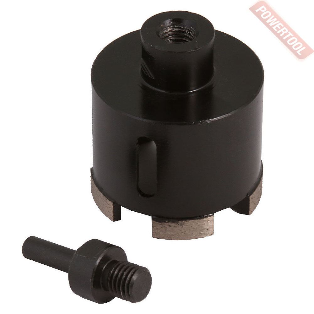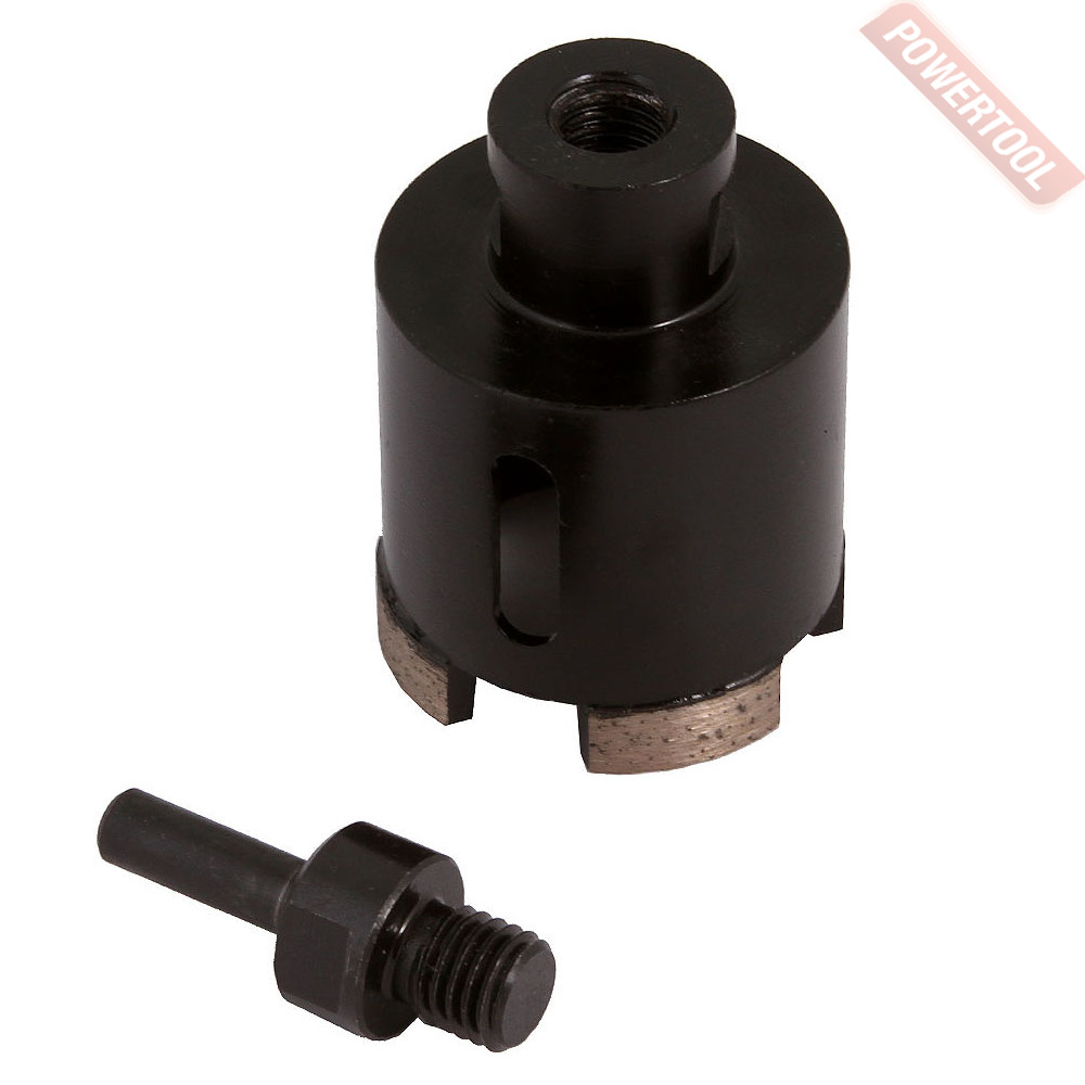 Коронка алмазная универсальная кольцевая для УШМ, диаметр 54 мм, глубина сверления 35 мм, тип хвостовика M14, вакуумное спекание сегмента, сухое сверление, предназначена для сверления отверстий в керамограните, камне, керамике, бетоне, кирпиче, ограниченно листового металла, дерева и комбинаций всех этих материалов.