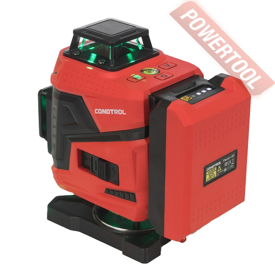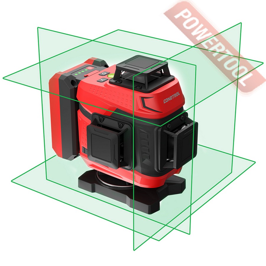 Лазерный уровень построитель плоскостей CONDTROL Fliesen 4D new — многофункциональный, надёжный и удобный инструмент, предназначенный для выполнения широкого спектра задач, требующих высокой точности разметки горизонтальных и вертикальных плоскостей. Он незаменим при выравнивании полов, укладке плитки, а также в отделочных, монтажных и строительных работах — как в помещении, так и на открытых строительных площадках.
