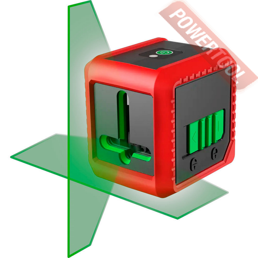 - Зелёный лазерный луч ярче красного, что улучшает видимость линий при ярком освещении и на улице.