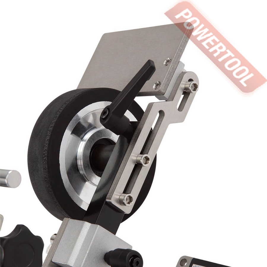 В комплект поставки входят направляющая с контактным роликом, поворотная консоль с роликами, два рабочих упора для вертикального и горизонтального шлифования, блок управления с регулировкой скорости, защитный кожух, три шлифовальные ленты и инструмент для сборки. Сборка простая и интуитивно понятная.