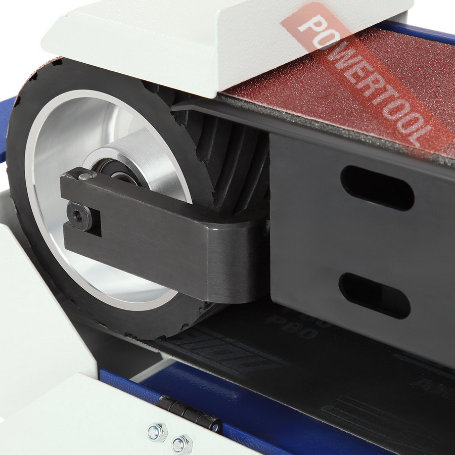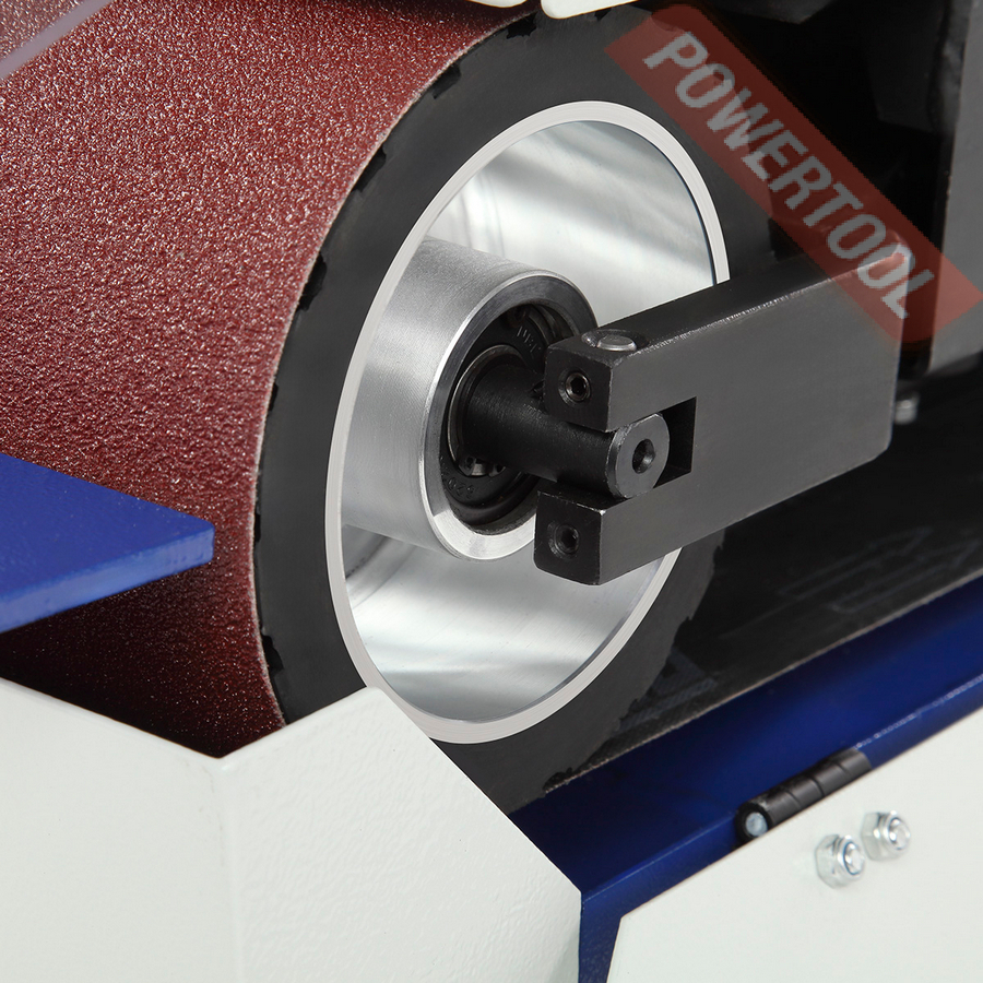 На станке установлена шлифовальная лента размером 1220х100 мм и зернистостью 80 грит. Скорость движения шлифовальной ленты составляет 19 м/с. Применение шлифовальных лент разной зернистости позволяет использовать станок для обработки различных материалов.