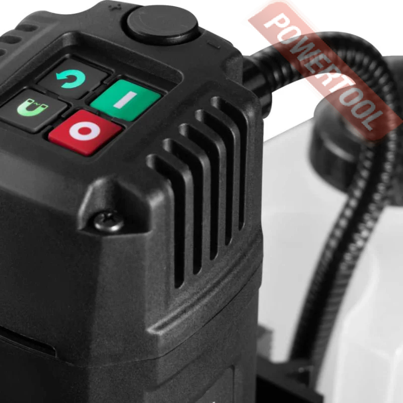 Магнитный сверлильный станок, 1750 Вт, 220 В, max диаметр корончатого сверла 50 мм, max диаметр спирального сверла 10 мм, крепление корончатого сверла на Weldon 19, ход шпинделя 160 мм, max нарезаемая резьба M10, частота вращения шпинделя 100-530 об/мин, плавная регулировка оборотов, индикация числа оборотов, размер магнитного основания ДхШ 166х80 мм, габариты ДхШхВ 420х210х580 мм, вес 12 кг, в комплекте патрон B16 ключевой 3-х кулачковый 1,5-13 мм, переходник Weldon 19/B16, система СОЖ, рукоятка регулировки высоты 3 шт, страховочный ремень, набор шестигранников, кейс.