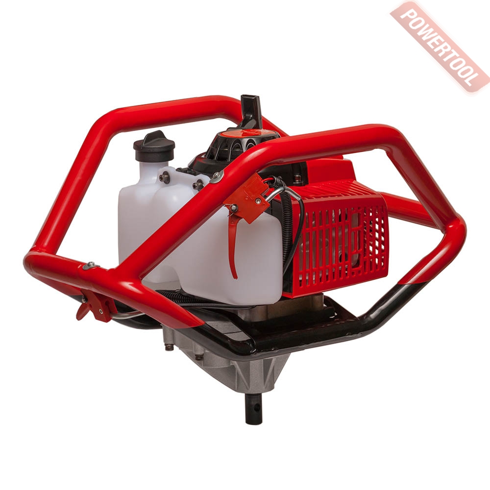 - Рабочей частью агрегата является винтообразный бур или шнек, который приводится во вращение с помощью двухтактного бензинового двигателя.