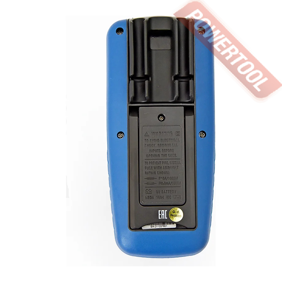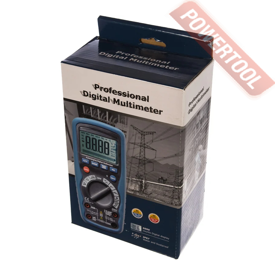 Цифровой мультиметр, внесен в госреестр СИ РФ, автоматический, диапазон измерения переменного тока от 600 мкА до 10 А, диапазон измерения постоянного тока от 600 мкА до 10 А, диапазон измерения переменного напряжения от 6 до 1000 В, диапазон измерения постоянного напряжения от 600 мВ до 1000 В, входное сопротивление VAC / VDC 10 МОм, диапазон измерения сопротивления от 600 Ом до 60 МОм, диапазон измерения частоты от 10 Гц до 10 МГц, коэффициент заполнения 0,1-99 процентов, ЖК-дисплей, проверка диодов, целостности цепи, функция min/max, функция Hold, функция Rel, питание от 1 батарейки 9В тип Крона, класс защиты от влаги и пыли IP67, габариты ДхШхВ 187х81х50 мм, вес 0,342 кг, элементы питания, щупы, чехол.