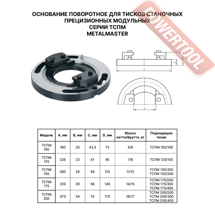 - 1. Основание поворотное для тисков METAL MASTER ТСПМ 175.