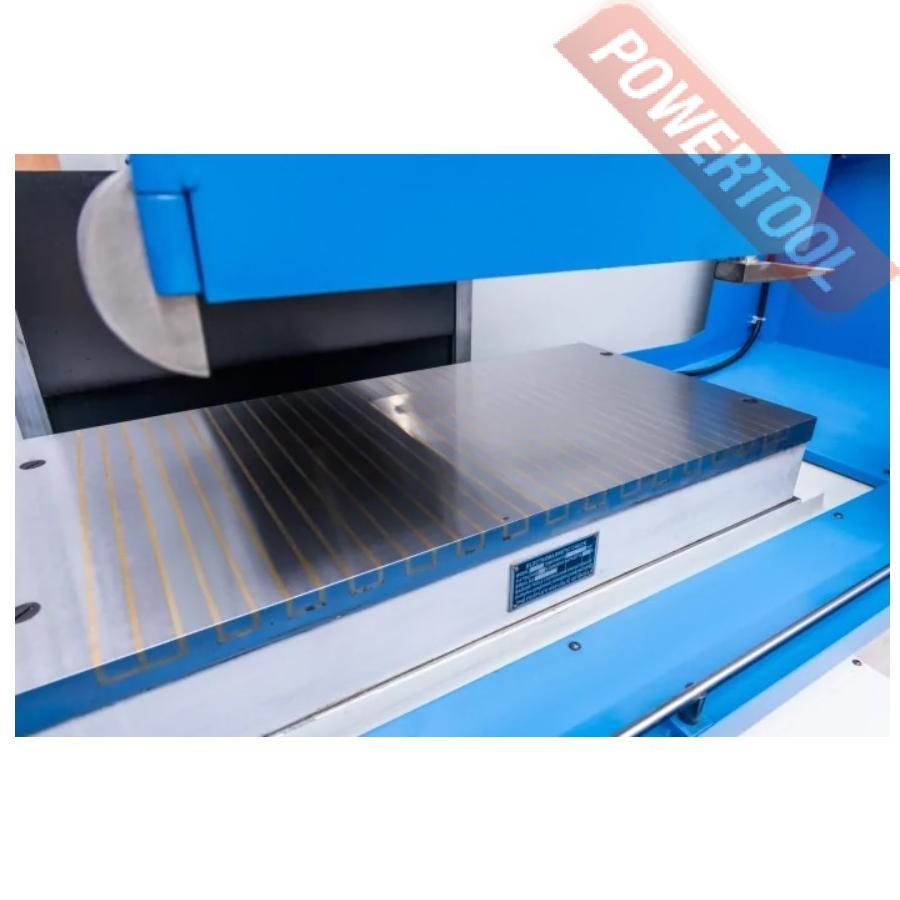 Плоскошлифовальный станок по металлу, мощность 9000 Вт, напряжение 380 В, шлифкруг 350х40х127 мм, скорость вращения шлифкруга 1450 об/мин, размер стола ДхШ 406х813 мм, размер магнитного стола 400х800 мм, max продольный/поперечный ход стола 910х450 мм, max расстояние шпиндель-стол 580 мм, скорость перемещения стола 7-23 м/мин, max нагрузка на стол 500 кг, автоподача стола, автоподача шлифкруга, подсветка рабочей зоны, размер ДхШхВ 1890х3600х2400 мм, вес 3500 кг, шлифкруг с фланцами и съёмником, балансировочная оправка, регулировочные опоры, электромагнитный патрон, крепежный набор, программируемый логический контроллер (PLC).