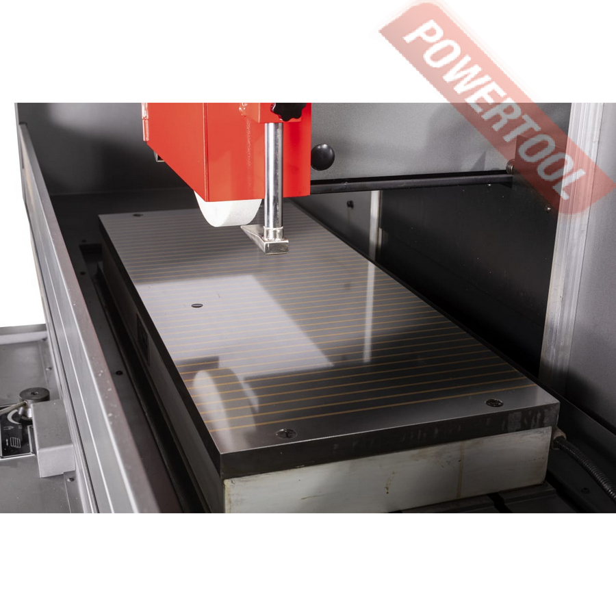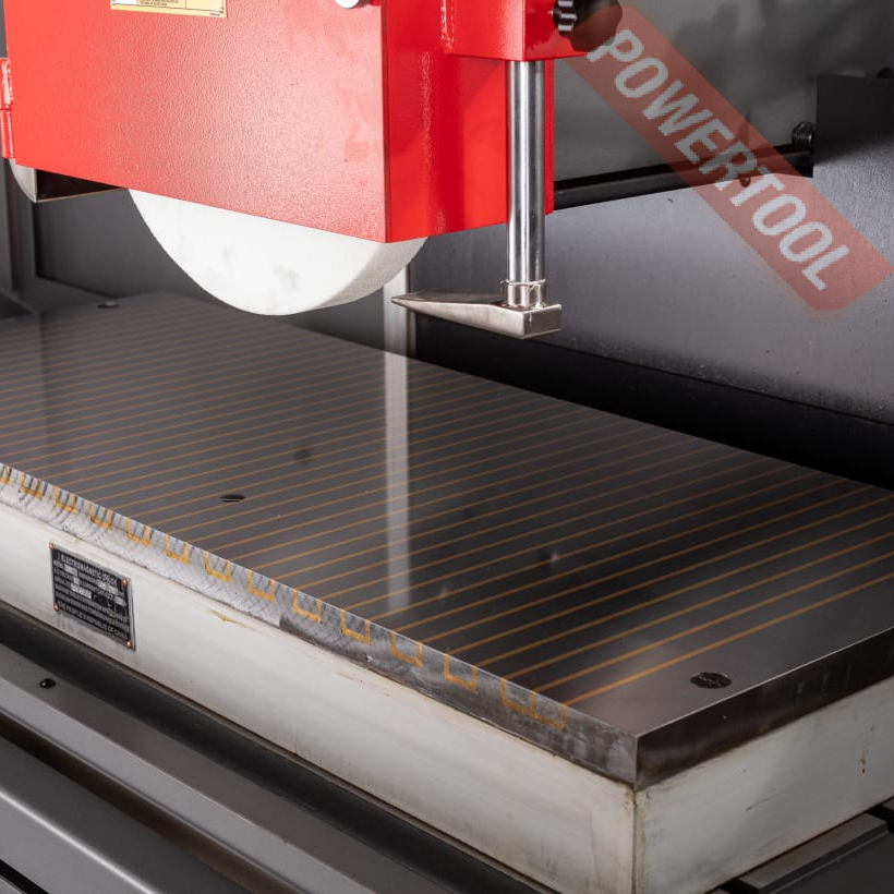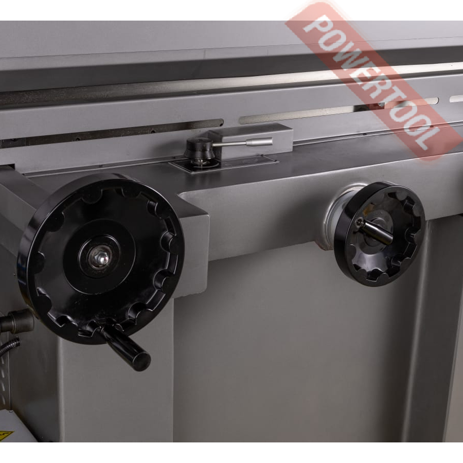 Стол приводится в движение вручную или через гидравлический привод (в правом или левом направлении), скорость плавно изменяется с помощью регулировочного рычага, расположенного на салазках. В поперечном направлении движение стола осуществляется вручную или двигателем через ходовой винт. Шлифовальная голова перемещается с автоматической подачей в диапазоне от 5 до 50 мкм с помощью приводного серводвигателя Delta и PLC контроллера фирмы Siemens.