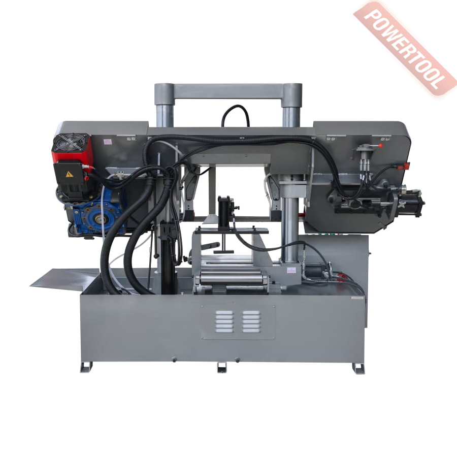 Станок оснащен гидравлической системой подъема и опускания пильной рамы с плавной регулировкой скорости подачи с пульта оператора для выбора оптимального режима резания. По окончании пиления, концевой выключатель останавливает движение ленточного полотна, пильная рама поднимается в исходное положение для осуществления циклических операций.