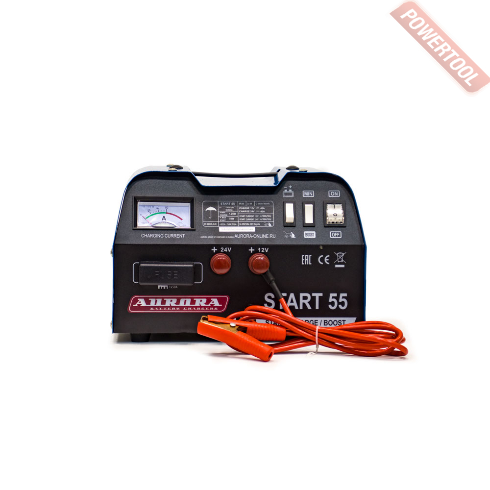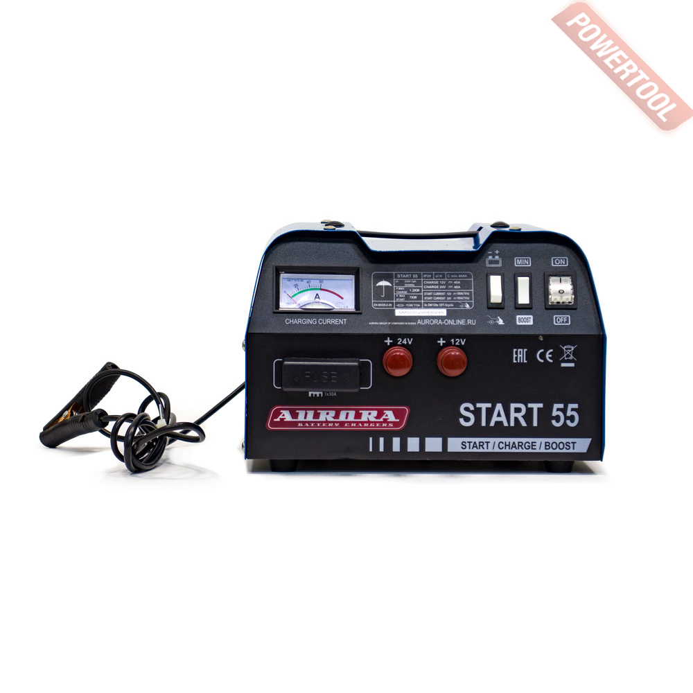 Пуско-зарядное устройство AURORA Start 55 служит для зарядки аккумуляторов со свободным электролитом напряжением 12/24 В и для быстрого пуска всех типов легковых автомобилей, микроавтобусов, легких грузовых автомобилей, мотоциклов и др. Можно использовать везде, где применяются свинцово-кислотные аккумуляторы, которые до сих пор остаются самыми надежными, долговечными и не очень затратными химическими источниками тока. Устройство надежно, имеет длительный срок службы, радует современным дизайном, компактно, что, при этом, не ухудшает технических параметров устройства.