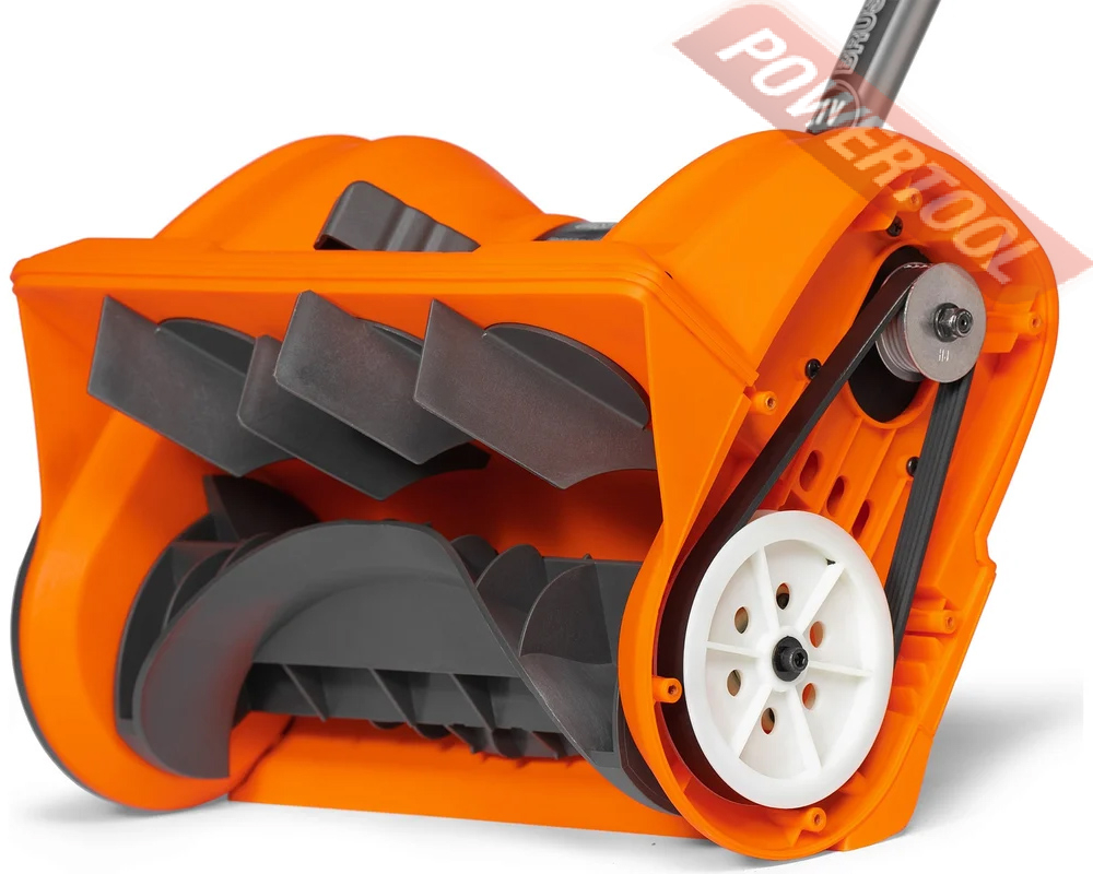 - Ременный привод обеспечивает надежную передачу крутящего момента от двигателя к шнеку, одновременно защищая мотор от перегрузок и повреждений в случае застревания или блокировки шнекового механизма.