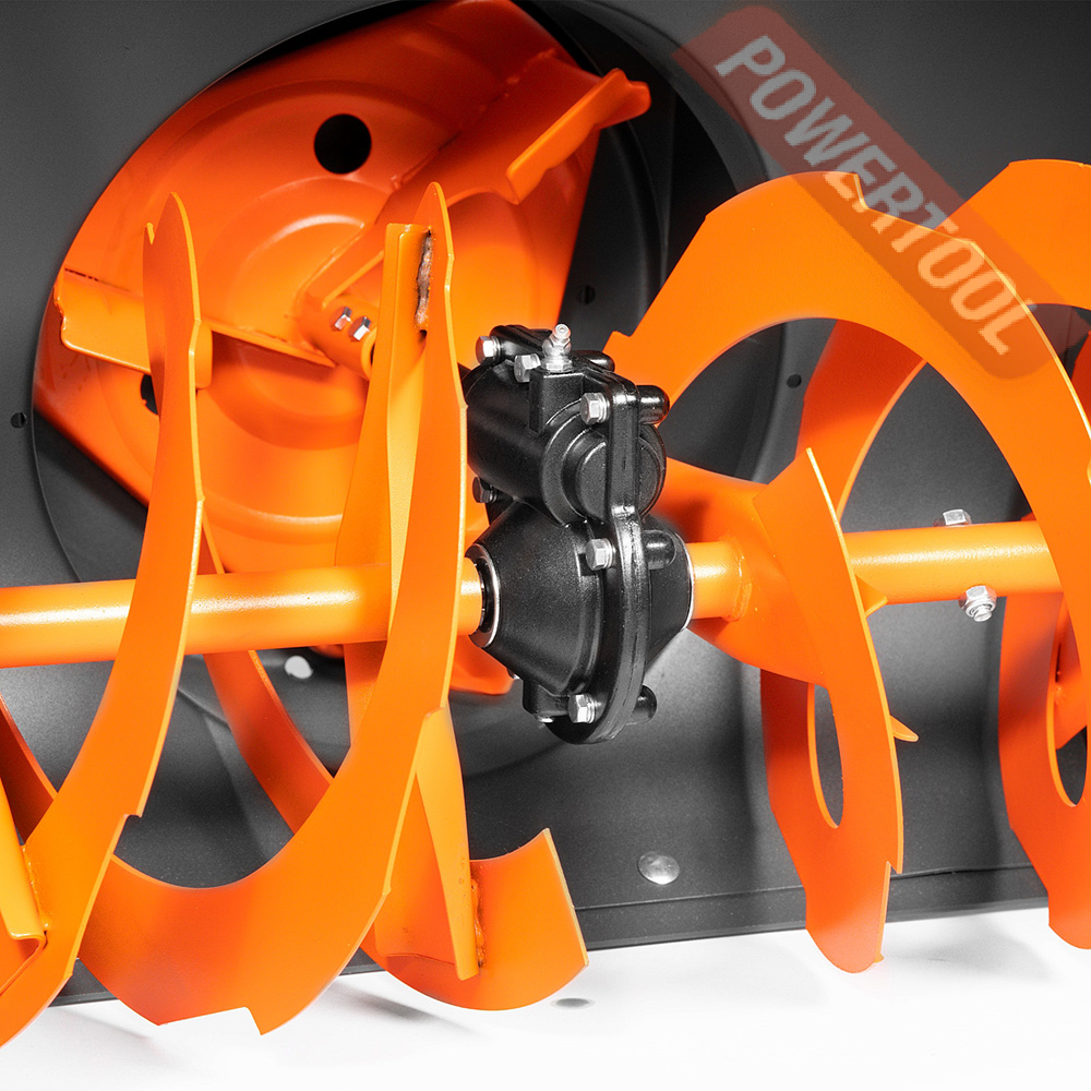 - Усиленный редуктор. Усиленный редуктор в паре со стальными опорами шнека с подшипниками передает до 95% крутящего момента на рабочие узлы сборки и выброса снега.Выходной вал редуктора крепится на подшипниках большого диаметра, что обеспечивает высокую устойчивость механизмов к вибрации и ударам.