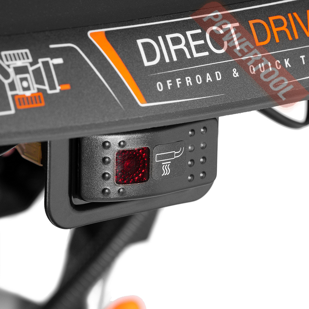 • Подогрев рукояток. Для комфортной работы при низких температурах снегоуборщик снабжен подогревом рукояток управления. Кнопка включение и выключение размещена на панели и защищена от попадания снега и влаги.