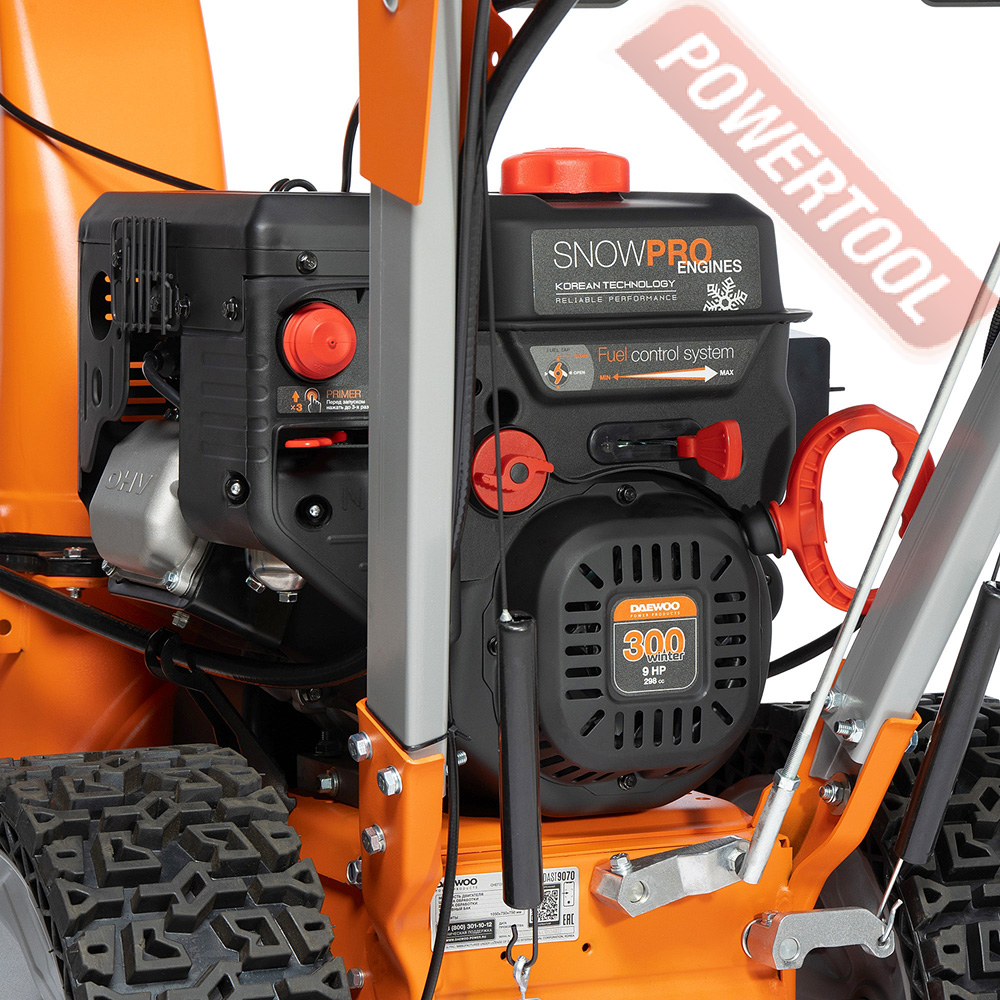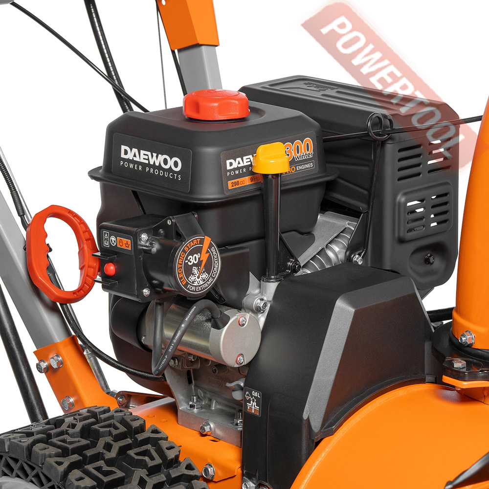 • Двигатель DAEWOO зимней серии 300 snow. Уверенный запуск при отрицательных температурах, повышенный моторный ресурс, увеличенный глушитель и сниженный уровень шума, вместитетльный топливный бак.