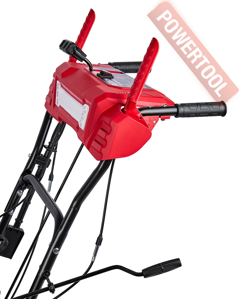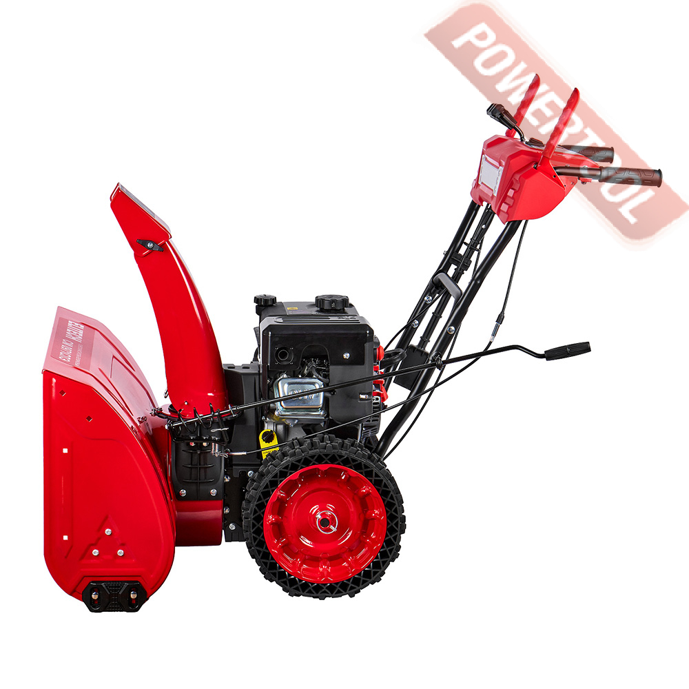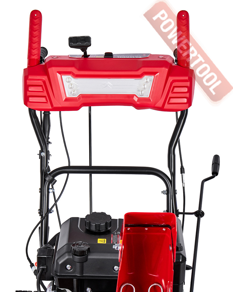 Снегоуборщик колесный самоходный, ширина ковша 71 см, высота ковша 52 см, скорости 6 вперед и 2 назад, выбор направления выброса снега осуществляется вращением боковой рукоятки, угол поворота желоба 180 градусов, дальность выброса регулируется вручную на желобе и достгиает 12 м, подогрев рукояток, LED-фара, пневматические колеса 35 см, 4-тактный бензиновый двигатель ELITECH R252DS-2R объемом 252 куб.см и мощностью 7 л.с., топливный бак 2,6 л, расход топлива 1,5 л/ч, емкость картера 0,55 л, трансмиссия фрикционный диск, габариты 1250х735х1100 мм, вес 68 кг.