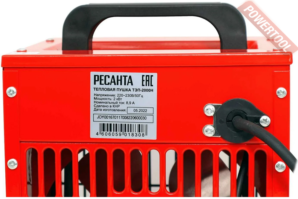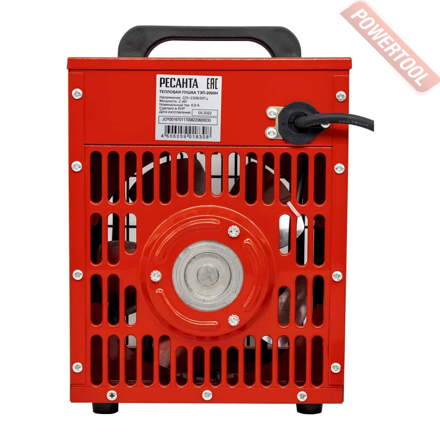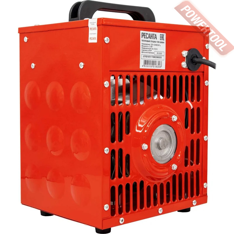 Тепловая пушка электрическая РЕСАНТА ТЭП-2000H - надежный экономичный обогреватель для квартиры и загородного дома. Большая площадь ТЭНов из нержавеющей стали и эффективный обдув способствуют более быстрому нагреву помещения без выжигания кислорода. Безопасность обеспечена дополнительным защитным кожухом, термопредохранителем, капиллярным терморегулятором и заземлением корпуса. Это устройство позволяет создать приемлемые климатические условия в помещениях даже с полным отсутствием иных источников отопления. Конструкция надежна и практична. Запуск производится путем переключения регулировочного реле. Обеспечивает чистый, быстрый и безопасный нагрев, идеален в качестве временного или экстренного средства обогрева благодаря простоте эксплуатации и мобильности. Процесс эксплуатации можно охарактеризовать достаточно тихим, при этом отсутствуют какие либо запахи. Нет необходимости заправлять оборудование топливом, достаточно просто произвести подсоединение к сети. Также однозначным достоинством технологии является сбережение кислорода внутри помещения.
