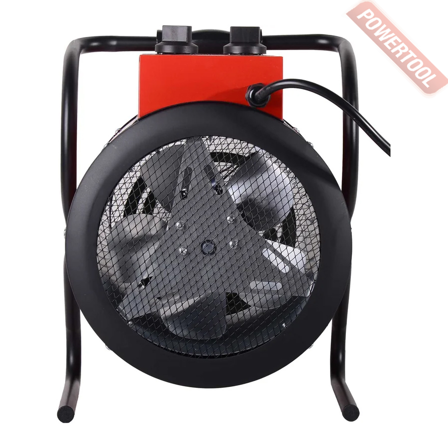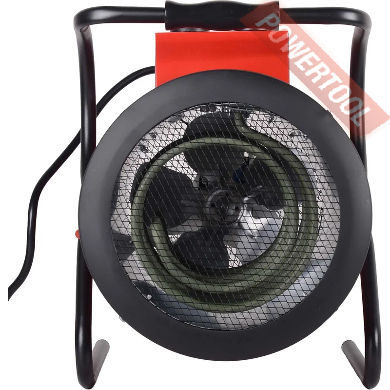 Тепловая пушка электрическая, напряжение сети 380 В, тепловая мощность 2,5/5 кВт, расход воздуха 400 куб.м/ч, потребляемая мощность 5000 Вт, 2 режима нагрева, режим вентилятора, встроенный термостат, датчик перегрева, спиральный ТЭН, габариты ДхШхВ 332х332х415 мм, вес 5,4 кг.