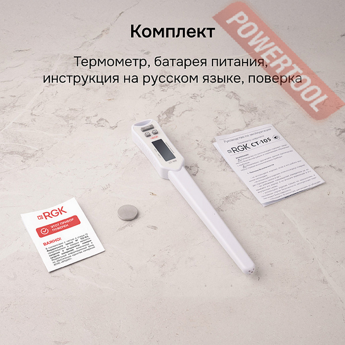 - 1. Термометр контактный пищевой RGK CT-105.