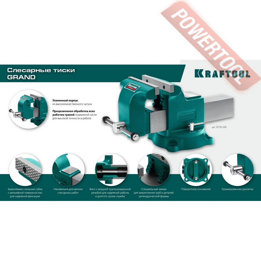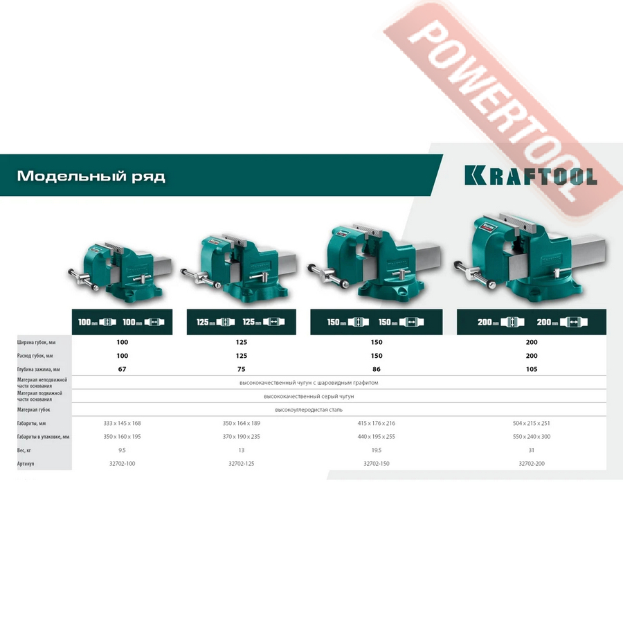 Тиски слесарные поворотные 100х100 мм KRAFTOOL Grand арт.32702-100