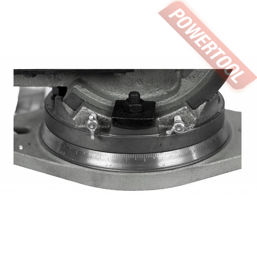 • Поворотная база корпуса градуирована по шкале с шагом в 1 градус. Шкала определена гравировкой, что обеспечивает качество и длительность эксплуатации тисков.