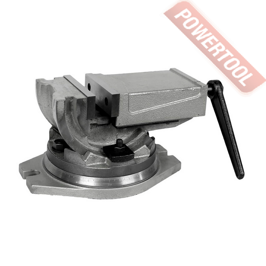 Тиски станочные прецизионные двухосевые, ширина губок 125 мм, рабочий ход 95 мм, высота губок 45 мм, угол наклона по вертикали 90 градусов, параллельность 0,06 мм, перпендикулярность 0,05 мм, функция поворота 360 градусов, усилие зажима 3500 кг, вес 23 кг.