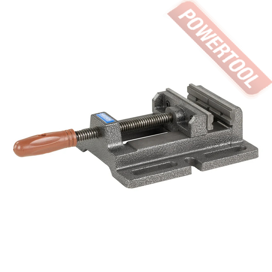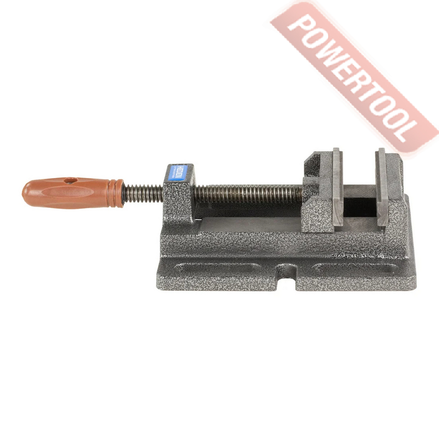 Тиски сверлильные, ширина губок 100 мм, рабочий ход 102 мм, высота губок 30 мм, размер ДхШхВ 300х180х70 мм, вес 3,4 кг.
