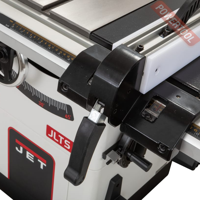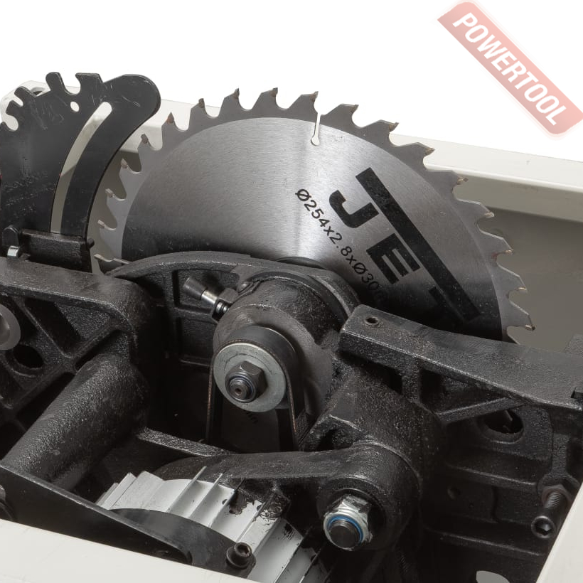 Устройство безопасного пиления в этом станке на высоком уровне. Здесь - подпружиненная, зубчатая, двухсторонняя защита от обратного удара и экранная защита пильного диска. Диск полностью закрывает пластиковый прозрачный экран. Он также двухсторонний. Он не мешает обзору зоны пиления. Свободно поднимается над заготовкой с обеих сторон от диска или только с одной, в зависимости от геометрии заготовок. Безопасная работа на станках – приоритет марки JET. Если по какой-то причине вам не нужны в работе эти устройства, например при пазовании. Для каждого их них есть свое место в органайзере на корпусе станка. Порядок в мастерской – залог качества изделий.