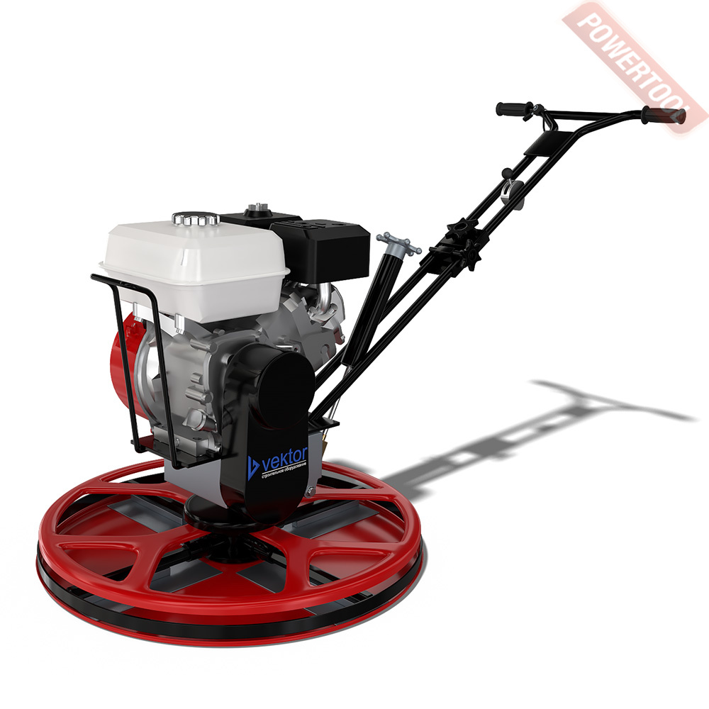 Однороторная затирочная машина по бетону, рабочая ширина 1220 мм, диск диаметром 1220 мм или 4 лопасти, угол наклона лезвий 0-30 градусов, частота вращения 60-125 об/мин, 4-тактный бензиновый двигатель WACKER NEUSON WM 270 объемом 265 куб.см мощностью 9 л.с., топливный бак 6 л,  расход топлива 3,1 л/ч, емкость картера 1,1 л,размеры ДхШхВ 2160x1220x1040 мм, вес 93 кг, комплект лопастей для финишной затирки, не входит в комплект поставки и приобретается отдельно рукоятка управления, затирочный диск и подъемная дуга.
